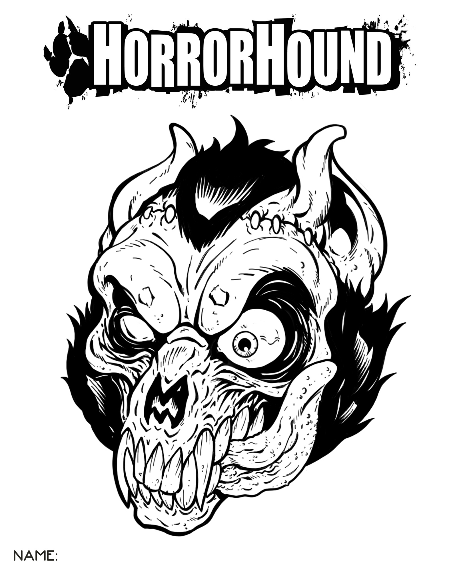 Last year, in celebration of HorrorHound's 10th Anniversary, we presented a special art contest just for kids! As a thank you to the amazing volume of kids who participated, we will be running many of those coloring jobs in our Fall exclusive issue of HorrorHound Magazine! And since it was such as success, we thought it would be a blast to present a new piece of artwork by Jeff Rebner – a "Madball" inspired HorrorHound – to print out and color! You can download and print this special HorrorHound art print, just for the little ones to color and have fun with (use paints, crayons, markers, etc ... under adult supervision, of course)! Anyone who brings their child's completed art print to the Sept 9-11th HorrorHound Weekend event will receive a special gift! It's easy. Just CLICK HERE to download a hires version of the HorrorHound artwork (by Jeff Rebner) and print it out! Have fun – and we hope to see these amazing finished prints this September!